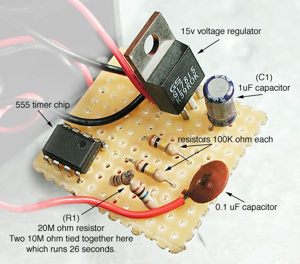 Batteries are required to power your fan in the field which can be cumbersome and expensive. An on/off switch of some type will help conserve batteries. A simple momentary push button switch may be the most elegant solution as a strong fan only needs to be turned on for a few seconds at a time. Rechargeable NiMh batteries can be used to soften the financial blow caused when the fan is accidentally left on. Multiple cells can be wired in series to achieve the required voltage. A typical high quality setup would be 8 AA cells with a momentary switch. Other more expensive battery options are 12v NiMh clusters used in RC cars/planes and cordless drills. The fan controller shown here uses (2) 9v cells to keep the controller small and lightweight and a voltage regulator to control the current. The controller also features a timer circuit which automatically shuts the fan off.