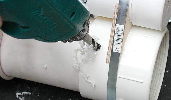 Use a 7/16" drill bit to create the hole for the street elbow. Position the metering device where it can be comfortably operated. Drill through the PVC coupling where there are two layers of plastic.