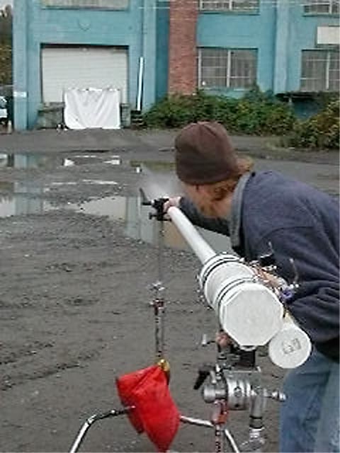 Without delay, the equipment was gathered for the long range tests. The launcher and barrels were the same used in the 50' tests. Again, 37 PSI fuel pressure was used for a calculated 4% propane mixture.