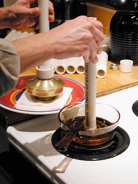 With a workflow established, production can be increased. Here one rocket is in the oil while another cools before it goes into the water.